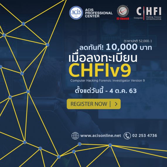 โค้งสุดท้าย!! สำหรับหลักสูตร Certified Ethical Hacker v10 (CEHv10) จัดขึ้นโดย บริษัทเอซิส โปรเฟสชั่นนัล เซ็นเตอร์ จำกัด (“ACIS”) ซึ่งหลักสูตรอัดแน่นไปด้วยความรู้ทั้งภาคทฤษฎี และปฏิบัติตลอด 5 วันเต็ม !! พร้อมสอบ Cert. !! พิเศษ !! รับส่วนลดทันที 10,000 บาท (ราคาปกติ 52,000.-) เมื่อลงทะเบียนหลักสูตร Certified […]