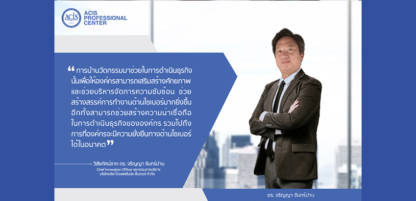 “ก่อนหน้านี้คนรู้จัก ACIS คือองค์กรที่ให้คำปรึกษาทางด้าน Cybersecurity และ Data Privacy รวมไปถึงการให้บริการด้านฝึกอบรมและตรวจสอบช่องโหว่ (Penetration Testing) มาเกือบ 20 ปี แต่เมื่อ 1-2 ปีที่ผ่านมา ACIS เองเราได้มีการทำ Digital Transformation และพิจารณาเรื่อง Digital Disruption จึงได้ก่อตั้งหน่วยงาน Cybersecurity Innovation ขึ้นมา เพื่อ Transform ธุรกิจให้เข้าสู่ยุคดิจิทัล .