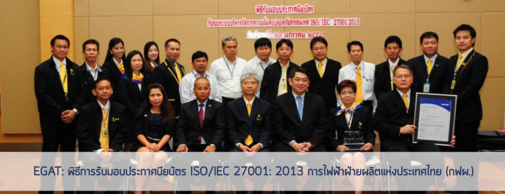 EGAT: พิธีการรับมอบประกาศนียบัตร ISO/IEC 27001: 2013 การไฟฟ้าฝ่ายผลิตแห่งประเทศไทย (กฟผ.)