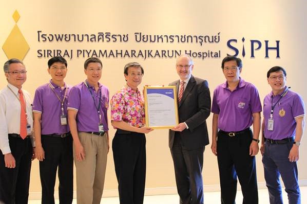 ณ โอกาสนี้ ตัวแทนฝ่ายบริหาร จากบริษัท TUV NORD ได้ให้เกียรติมอบประกาศนียบัตรให้กับ ศ.ดร.นพ.ประสิทธิ์ วัฒนาภา คณบดีคณะแพทยศาสตร์ศิริราชพยาบาล โรงพยาบาลศิริราช ปิยมหาราชการุณย์ โดยมี อ.ปริญญา หอมเอนก จากบริษัท เอซิส โปรเฟสชั่นนัล เซ็นเตอร์ และคณะที่ปรึกษาโครงการฯ เข้าร่วมแสดงความยินดี ในครั้งนี้อีกด้วย