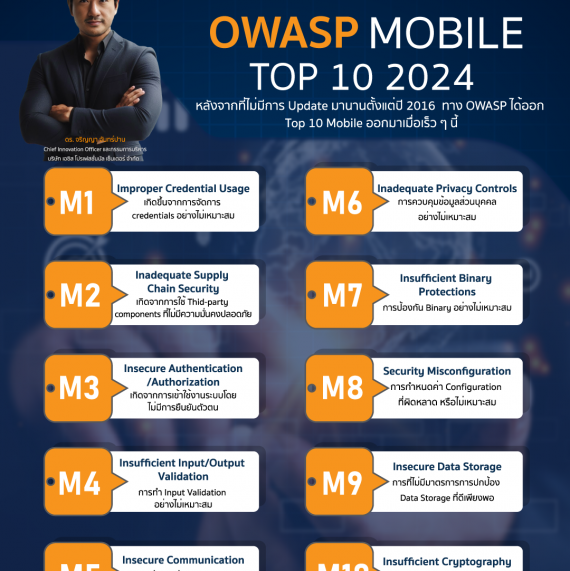 หลังจากที่ไม่มีการ Update มานานตั้งแต่ปี 2016 ทาง OWASP ได้ออก Top 10 Mobile ออกมาเมื่อเร็ว ๆ นี้ 𝗠𝟭: 𝗜𝗺𝗽𝗿𝗼𝗽𝗲𝗿 𝗖𝗿𝗲𝗱𝗲𝗻𝘁𝗶𝗮𝗹 𝗨𝘀𝗮𝗴𝗲เกิดขึ้นจากการจัดการ credentials อย่างไม่เหมาะสม เช่น• การทำ Hardcoded Credentials• การทำ Insecure Credential Transmission ที่มีการส่ง credentials โดยที่ไม่มีการเข้ารหัส […]