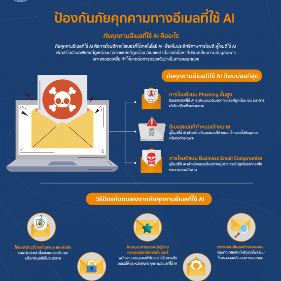 เทคโนโลยีปัญญาประดิษฐ์ (AI) กำลังปฏิวัติทุกอุตสาหกรรม รวมถึงการรักษาความปลอดภัยทางไซเบอร์ ด้วยความสามารถอันทรงพลังของ AI ผู้โจมตีจึงใช้วิธีการที่ซับซ้อนยิ่งขึ้นเพื่อหลีกเลี่ยงการตรวจจับ และประสบความสำเร็จในการโจมตี ในปี 2024 คาดว่าภัยคุกคามอีเมลที่ใช้ AI จะเพิ่มขึ้นอย่างมาก ดังนั้นจึงจำเป็นอย่างยิ่งที่องค์กร และบุคคลทั่วไปต้องเตรียมความพร้อมในการรับมือ. ภัยคุกคามอีเมลที่ใช้ AI คืออะไร.ภัยคุกคามอีเมลที่ใช้ AI คือการโจมตีทางไซเบอร์ที่ใช้เทคโนโลยี AI เพื่อเพิ่มประสิทธิภาพการโจมตี ผู้โจมตีใช้ AI เพื่อสร้างอีเมลฟิชชิงที่ดูเหมือนมาจากแหล่งที่ถูกต้อง อีเมลเหล่านี้อาจมีเนื้อหาที่ปรับเปลี่ยนตามข้อมูลเฉพาะเจาะจงของเหยื่อ ทำให้ยากต่อการตรวจจับว่าเป็นการหลอกลวง.นอกจากนี้ AI ยังสามารถใช้เพื่อวิเคราะห์รูปแบบการสื่อสารทางอีเมลของบุคคลหรือองค์กร เพื่อสร้างอีเมลที่กำหนดเป้าหมายอย่างแม่นยำมากขึ้น […]